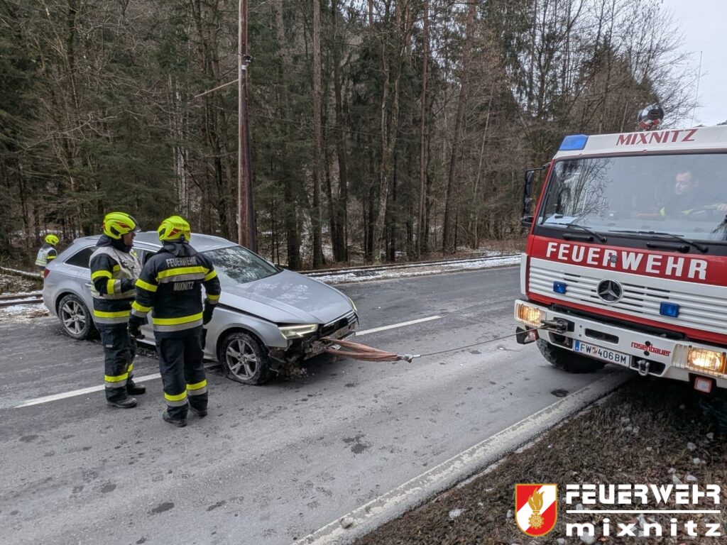 Am 17.3.2017 um 16:15 wurde die Feuerwehr Mixnitz zu einer Fahrzeugbergung Richtung B?rensch?tz alarmiert. Ein Pkw kam von der Stra?e ab und steckte im angrenzenden Graben fest. Das Fahrzeug wurde…